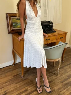 Women Summer Long Dress Sleeveless V Neck