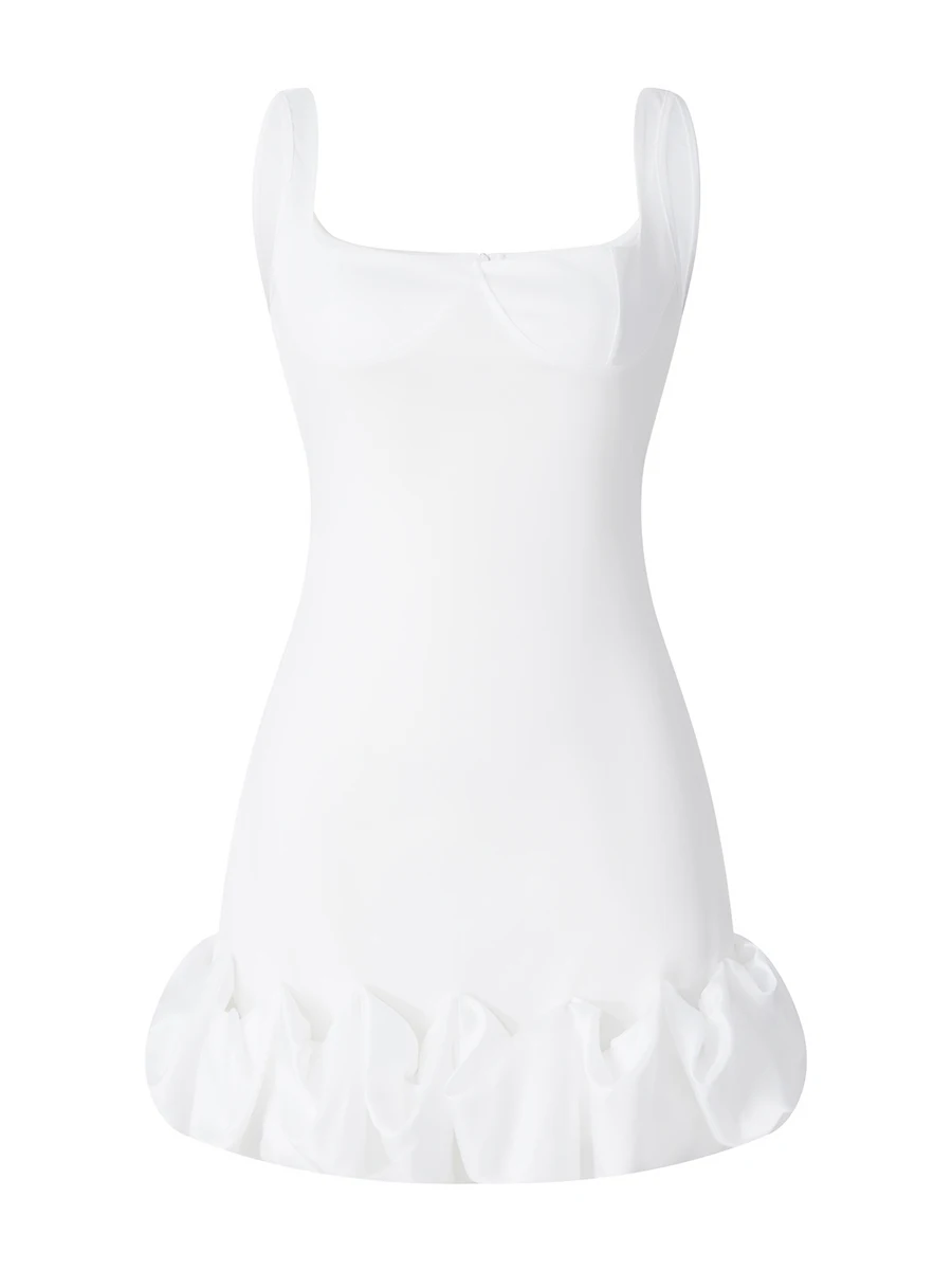 Women Spaghetti Strap Bodycon Dress Solid Color Pleated Ruffle Hem Sleeveless Party Dress for Cocktail Nightclub Beach